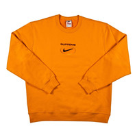 This Supreme x Nike Jewel pullover is designed in orange with a Swoosh applique on the front chest. Supreme branding is embroidered above the encirled Swoosh. Released as part of the FW20 season, the sweatshirt is topped with a classic crewneck.