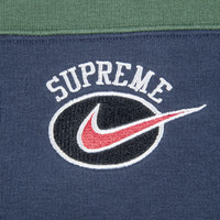Supreme and Nike made this sweatshirt for the SS19 season. Crafted from cotton-blend fleece, the navy hoodie features green stripes and a co-branded embroidered logo on the chest.