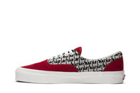 Fear of God, lead by designer Jerry Lorenzo, and iconic sneaker brand Vans released this collaboration sneaker in November 2017. The Fear of God x Era 95 DX 'Collection 2 Red' features prominent, black-and-white branding on the body of the shoe. Overlays at the forefoot and heel are cast in bright red corduroy fabric, adding texture and dimension to the classic silhouette. Underfoot, the sneaker retains the sticky gum-rubber sole of the original.