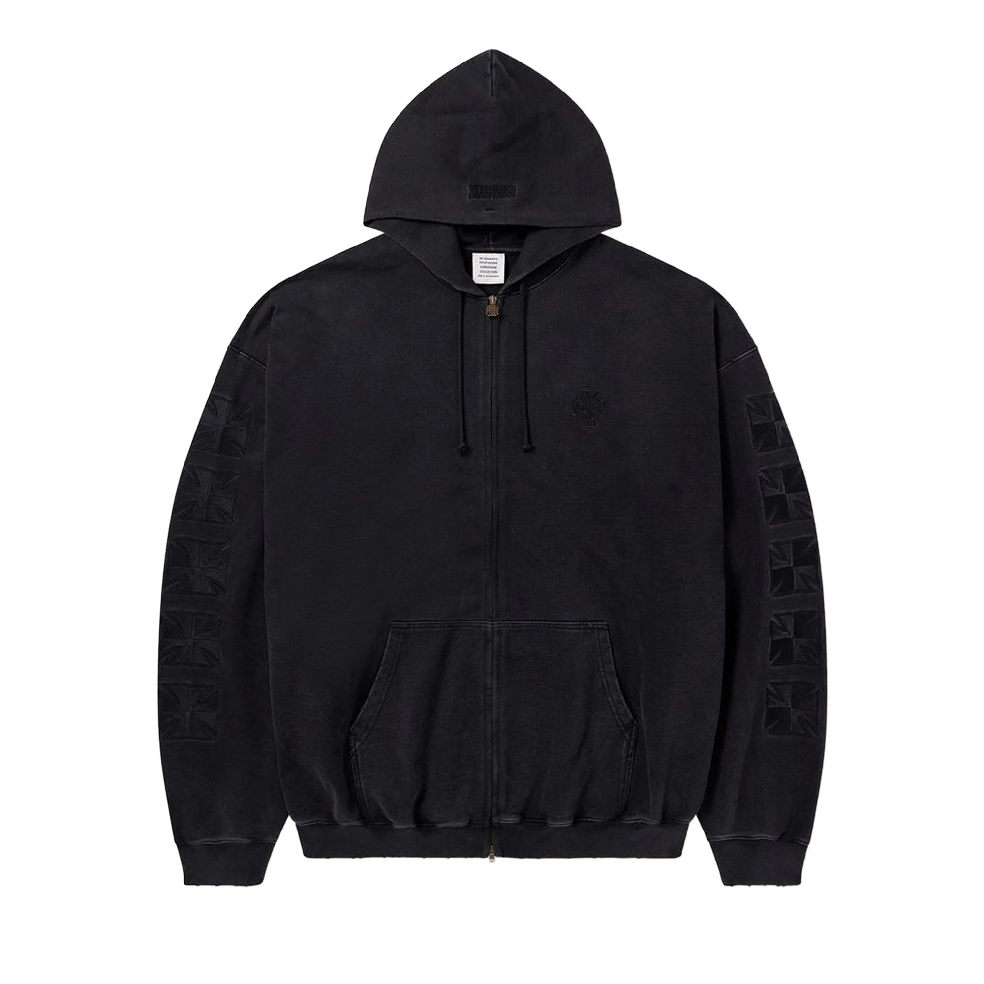 Vetements Embroidered Biker Cross Sleeve Zip-Up Hoodie 'Black'