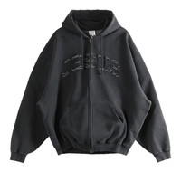 Vetements Jesus Christ Zip Up Hoodie 'Washed Out Black'