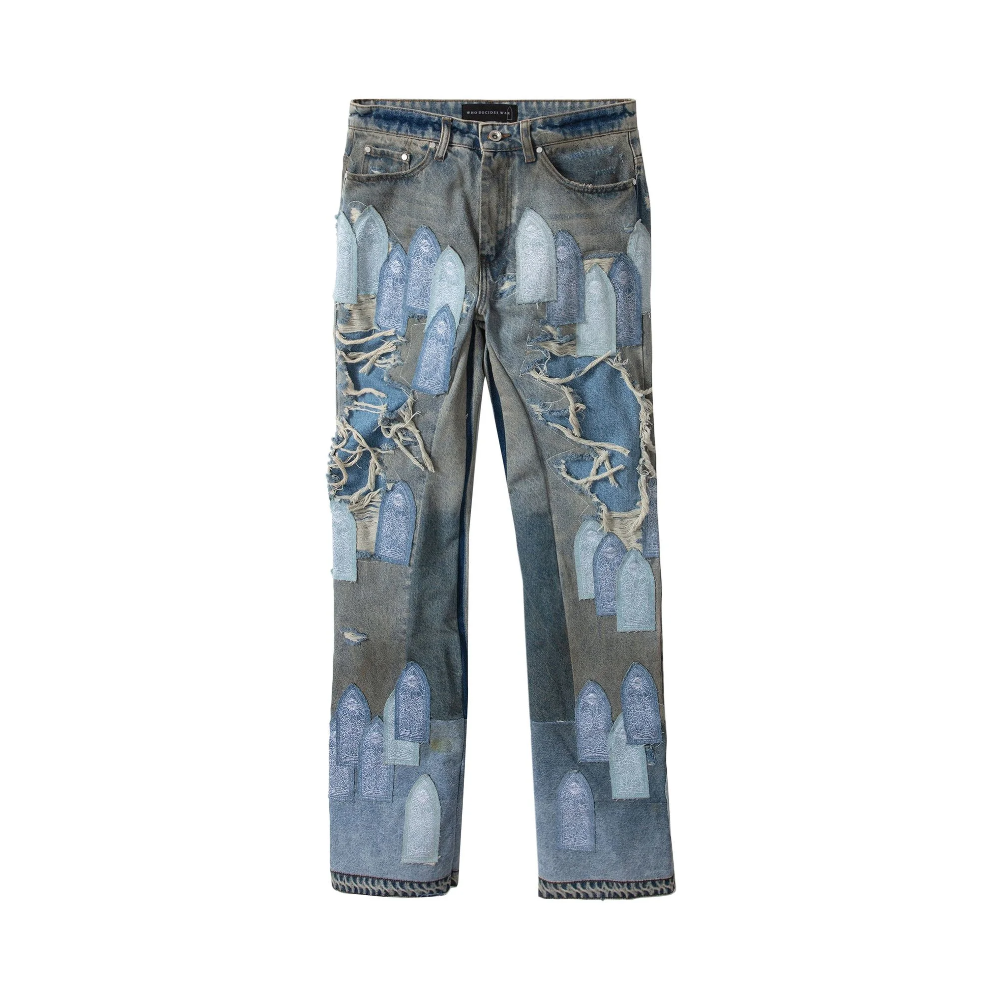 Who Decides War Patched Arch Repaired Blowout Denim Pants 'Blue'