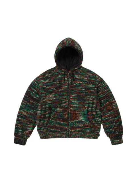 Supreme Faux Shearling Lined Zip Up Hooded Sweater 'Green MéLange'