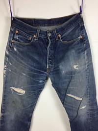 PLEASE READ DESCRIPTION CAREFULLY & ASK FIRST FOR YOUR SATISFACTION BEFORE BUY All ITEM ARE USED AND SOLD IN AS IS CONDITION CONDITION : -DISTRESSED VINTAGE CONDITION -MULTIPLE SIGN OF WEARS ; RIPPED, INSIDE-PATCHED, STAINED AND COOL FADED(DO REFER PHOTO) SIZE - 30 MATERIAL - 100% COTTON PLEASE ASK BEFORE BUY If u have any questions about the item,feel free to contact me.Your satisfaction is my priority and if there are any reasonable concerns,do contact me before or after. **Do contact me for combine shipping** "Take note that item are measured in inches while laying flat.To ensure a good fit try measuring a piece in your closet that you would like to fit similarly.” •Item will be shipped with a tracking number that will be provided. •Absolutely no returns/exchanges,unless there was an error by the seller (e.g. the seller ship the wrong item). •Upon payment of this invoice,the buyer acknowledges that “charge-backs” or “unauthorized purchases/transactions” initiated via their bank and/or creditor should be recognized by Paypal as an attempt to commit fraud in order to keep the seller’s merchandise while receiving reimbursement. - [ ]