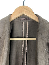PLEASE READ DESCRIPTION CAREFULLY & ASK FIRST FOR YOUR SATISFACTION BEFORE BUY All ITEM ARE USED AND SOLD IN AS IS CONDITION CONDITION : -GOOD VINTAGE CONDITION -GOT ONE BUTTON GLUED(SPLIT INTO TWO BEFORE) SIZE - L PIT TO PIT -21”INCH SHOULDER TO HEM - 31”INCH SLEEVE - 25”INCH MATERIAL - 100% LINEN PLEASE ASK BEFORE BUY If u have any questions about the item,feel free to contact me.Your satisfaction is my priority and if there are any reasonable concerns,do contact me before or after. **Do contact me for combine shipping** "Take note that item are measured in inches while laying flat.To ensure a good fit try measuring a piece in your closet that you would like to fit similarly.” •Item will be shipped with a tracking number that will be provided. •Absolutely no returns/exchanges,unless there was an error by the seller (e.g. the seller ship the wrong item). •Upon payment of this invoice,the buyer acknowledges that “charge-backs” or “unauthorized purchases/transactions” initiated via their bank and/or creditor should be recognized by Paypal as an attempt to commit fraud in order to keep the seller’s merchandise while receiving reimbursement. - [ ]