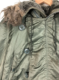 PLEASE READ DESCRIPTION CAREFULLY & ASK FIRST FOR YOUR SATISFACTION BEFORE BUY All ITEM ARE USED AND SOLD IN AS IS CONDITION CONDITION : -GOOD VINTAGE CONDITION -SUNFADED -NO MAJOR DEFECTS SIZE - S PIT TO PIT - 26”INCH SHOULDER TO HEM - 31.5”INCH MATERIAL - SHELL/LINING100% NYLON ,INTERLINING 100% SYNTHETIC FIBRE PLEASE ASK BEFORE BUY If u have any questions about the item,feel free to contact me.Your satisfaction is my priority and if there are any reasonable concerns,do contact me before or after. **Do contact me for combine shipping** "Take note that item are measured in inches while laying flat.To ensure a good fit try measuring a piece in your closet that you would like to fit similarly.” •Item will be shipped with a tracking number that will be provided. •Absolutely no returns/exchanges,unless there was an error by the seller (e.g. the seller ship the wrong item). •Upon payment of this invoice,the buyer acknowledges that “charge-backs” or “unauthorized purchases/transactions” initiated via their bank and/or creditor should be recognized by Paypal as an attempt to commit fraud in order to keep the seller’s merchandise while receiving reimbursement. - [ ]