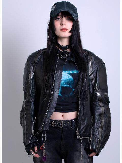 New Rock Heavy Leather Motorcycle Flame Jacket Brand New with Tags