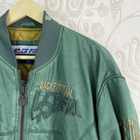 Vintage 45RPM BFA Back Fire Bomber Jacket Brand : Back Fire Made In : USA Design : Bomber, Quilted, Colour : Green / As Pictures Condition : 9/10 - Vintage, One Small Tear, Code : BJ57 Manual Measurement Size : Laid Flat Chest 25 inch, Length 26 inch, Size On Tag : L If You Like This Pieces, Grab It Now. It May Not Easy To Find It Again. こんにちは、オンラインショップへようこそ Please Buy With Confidence. We Had More Than 350 Sold Items At Grailed With Perfect Feedback! 【PLEASE READ CAREFULLY OUR DESCRIPTION AND SATISFIED OUR ITEM BEFORE MAKE ANY PAYMENT】 *Products maybe vintage or used item and may have sign of wear *NO Return & NO Refund & NO Fussy Buyer *Payment Accepted via STRIPE / PayPal Only *Details at the photo for confirmation 【DISCOUNT】 Please Give Us Your Offer, We Can Only Accept The Discount By Negotiation 【SHIPMENT】 All item/pieces will be shipped within 1-3 business day via Fedex / DHL Express Post with tracking number (within 7-10 days). Usually declare item as a 'gift'. 【IMPORTANT】 TELEPHONE NUMBER and EMAIL is required for standard shipping detail Find More Hype Garments At Grailed Account : GodSamurai #ChromeHearts #Amiri #FTP #Dior #LV #Bode #CommeDesGarcons #JunyaWatanabe #BAPE #Amiri #Supreme #Bally #CDG #Undercoverism #Kapital #SaintLaurent #AllSaints #Cyber24