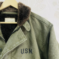 Navy Department True Vintage 70s USN N-1 Deck Military Jacket PLEASE DON'T EXPECT THIS AS PRISTINE AS NEW ITEM If You Like This Pieces, Grab It Now! It May Not Easy To Find It Again. こんにちは、オンラインショップへようこそ Please Buy With Confidence. We Had More Than 350 Sold Items At Grailed With Perfect Feedback! Brand : Navy Department Made In : USA Design : Heavy, Dual Layer, Colour : Green Army / As Pictures Condition : 8/10 - Vintage, Good Condition Manual Measurement Size : Laid Flat Armpit to Armpit : 24 inch Shoulder to Hem : 26 inch Size On Tag : Unknown Faded Store Code : BJ61 【PLEASE READ CAREFULLY OUR DESCRIPTION AND SATISFIED OUR ITEM BEFORE MAKE ANY PAYMENT】 【DISCOUNT】 Please Give Us Your Offer, We Can Only Accept The Discount By Negotiation *Products maybe vintage or used item and may have sign of wear *NO Return & NO Refund & NO Fussy Buyer *Payment Accepted via STRIPE / PayPal Only *Details At The Photos For Your Reference 【SHIPMENT】 All item/pieces will be shipped within 1-3 business day via FEDEX / DHL Express Post with tracking number (within 7-10 days). +++ Don't worry about customs tax or fee. We usually declare item as a 'gift & declare value of item below than original price +++ 【IMPORTANT】 TELEPHONE NUMBER and EMAIL is required for standard shipping detail We Sell ChromeHearts Dior Gucci Louis Vuitton Supreme FTP Raf Simons Rick Owen Dries Van Norten Air Jordan GOA Amiri Bode Junya Watanabe CDG CommeDesGarcons IsseyMiyake SonicYouth Akira Stussy