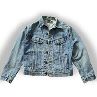 Vintage 1980s Lee Storm Denim Trucker Jacket USA If You Like This Pieces, Grab It Now!!! It May Not Easy To Find It Again. こんにちは、オンラインショップへようこそ Please Buy With Confidence. We Had More Than 360 Sold Items At Grailed With Perfect Feedback! Brand : Lee USA Design : Denim, Buttons, Workwear, Made In : USA Colour : Blue / As Pictures Condition : 8/10 - Used, Classic Pocket, Manual Measurement Size : Laid Flat Armpit to Armpit : 19 inches, Shoulder to Hem : 22 inches, Size On Tag : 16 (recommended M) Store Code : BJ51 Take Note : 1. Items Maybe Shrinked From Original Size 2. Items Maybe Oversized From Original Size 3. Items Usually Had Wear And Tear 【DISCOUNT】 Please Give Us Your Offer, We Can Only Accept The Discount By Negotiation 【PLEASE READ CAREFULLY OUR DESCRIPTION AND SATISFIED OUR ITEM BEFORE MAKE ANY PAYMENT】 *Products maybe vintage or used item and may have sign of wear *NO Return & NO Refund & NO Fussy Buyer *Payment Accepted via STRIPE / PayPal Only *Details At The Photos For Your Reference 【SHIPMENT】 All item/pieces will be shipped within 1-3 business day via FEDEX / DHL Express Post with tracking number (within 7-10 days). +++ Don't worry about customs tax or fee. We usually declare item as a 'gift & declare value of item below than original price +++ 【IMPORTANT】 TELEPHONE NUMBER and EMAIL is required for standard shipping detail #VintageTShirt #ChromeHearts #RafSimonse #RickOwen #HystericGlamour #Amiri #Bode #JunyaWatanabe #CommeDesGarcons #IsseyMiyake