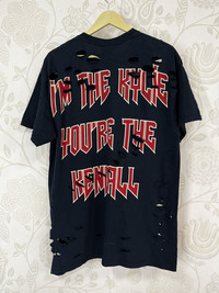 Distressed Kendall And Kylie Iconic Streetwear TShirt If You Like This Pieces, Grab It Now! It May Not Easy To Find It Again. こんにちは、オンラインショップへようこそ Please Buy With Confidence. We Had More Than 320 Sold Items At Grailed With Perfect Feedback! Brand : Kylie Kendall Jenner Made In : Dominican Republic Design : Back Printed, Ripped, Colour : Black / As Pictures Condition : 9/10 - Used, Code : BAND01 Manual Measurement Size : Laid Flat Armpit to Armpit : 21 inch Shoulder to Hem : 30 inch Size On Tag : L 【PLEASE READ CAREFULLY OUR DESCRIPTION AND SATISFIED OUR ITEM BEFORE MAKE ANY PAYMENT】 【DISCOUNT】 Please Give Us Your Offer, We Can Only Accept The Discount By Negotiation *Products maybe vintage or used item and may have sign of wear *NO Return & NO Refund & NO Fussy Buyer *Payment Accepted via STRIPE / PayPal Only *Details At The Photos For Your Reference 【SHIPMENT】 All item/pieces will be shipped within 1-3 business day via FEDEX / DHL Express Post with tracking number (within 7-10 days). +++ Don't worry about customs tax or fee. We usually declare item as a 'gift & declare value of item below than original price +++ 【IMPORTANT】 TELEPHONE NUMBER and EMAIL is required for standard shipping detail #VintageTShirt #ChromeHearts #RafSimonse #RickOwen #HystericGlamour #Amiri #Bode #JunyaWatanabe #CommeDesGarcons #IsseyMiyake #SonicYouth #Akira #Dior