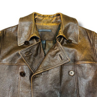 JOHN VARVATOS GOAT LEATHER TRENCH COAT ITALY SIZE 52 (First Pictures Is Just An Inpression How To Wear This) PLEASE DON'T EXPECT THIS AS PRISTINE AS NEW ITEM If You Like This Pieces, Grab It Now! It May Not Easy To Find It Again. こんにちは、オンラインショップへようこそ Please Buy With Confidence. We Had More Than 360 Sold Items At Grailed With Perfect Feedback! Brand : John Varvatos Made In : Italy Design : Long Coat, Double Breasted, Goat Leather, Colour : Brown Leather / As Pictures Condition : 9/10 - Used, Code : HG01 Manual Measurement Size : Laid Flat Armpit to Armpit : 22 inch Shoulder to Hem : 36 inch Size On Tag : 52 【PLEASE READ CAREFULLY OUR DESCRIPTION AND SATISFIED OUR ITEM BEFORE MAKE ANY PAYMENT】 【DISCOUNT】 Please Give Us Your Offer, We Can Only Accept The Discount By Negotiation *Products maybe vintage or used item and may have sign of wear *NO Return & NO Refund & NO Fussy Buyer *Payment Accepted via STRIPE / PayPal Only *Details At The Photos For Your Reference 【SHIPMENT】 All item/pieces will be shipped within 1-3 business day via FEDEX / DHL Express Post with tracking number (within 7-10 days). +++ Don't worry about customs tax or fee. We usually declare item as a 'gift & declare value of item below than original price +++ 【IMPORTANT】 TELEPHONE NUMBER and EMAIL is required for standard shipping detail We Sell ChromeHearts Dior Gucci Louis Vuitton Supreme FTP Raf Simons Rick Owen Dries Van Norten Air Jordan GOA Amiri Bode Junya Watanabe CDG CommeDesGarcons IsseyMiyake SonicYouth Akira Stussy
