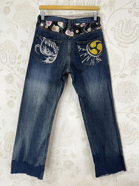 Vintage Karakuri Japan Denim Jeans Brand : Japan Design : Ripped, Embroidered, Blue Jeans, Colour : Blue / As Pictures Condition : 9/10 - Used, Code : SJ55 Manual Measurement Size : Lying Flat Waist 29 inch, Inseam 29 inch, Outseam 39 inch, Size On Tag : Unsure If You Like This Pieces, Please Grab It Now. It May Not Easy To Find It Again. こんにちは、オンラインショップへようこそ Please Buy With Confidence. We Had More Than 320 Sold Items At Grailed With Perfect Feedback! 【PLEASE READ CAREFULLY OUR DESCRIPTION AND SATISFIED OUR ITEM BEFORE MAKE ANY PAYMENT】 【DISCOUNT】 Please Give Us Your Offer, We Can Only Accept The Discount By Negotiation *Products maybe vintage or used item and may have sign of wear & tear *NO Return & NO Refund & NO Fussy Buyer *Payment Accepted via GRAILED ONLY *Details At The Photos For Confirmation 【SHIPMENT】 All items/pieces will be shipped within 1-3 business day via FEDEX / DHL Express with tracking number (within 5-10 days). +++ Don't worry about customs tax or fee. We usually declare item as a 'gift & declare value of item below than original price +++ 【IMPORTANT】 AFTER Purchased, TELEPHONE NUMBER and EMAIL is required for standard shipping detail. Thank You Shopping With Us Grailed Account : GodSamurai #ChromeHearts #RafSimonse #RickOwen #HystericGlamour #Amiri #Bode #Dior #IsseyMiyake #MiuMiu #LouisVuitton #Fendi #JunyaWatanabe #CommeDesGarcons #HelmutLang #Hermes #Birkins #Gucci #Celine #Prada #Sneakers #Kapital #GalleryDept #Undercover #BAPE