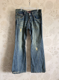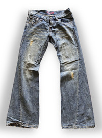 Flare Vintage Mud Wash OXS Rubber Soul Boot Cut Denim Jeans Japan Tag : Rubber Soul Colour : Blue Denim Condition : 9/10 - Used Condition, Distressed Code : SJ33 Manual Measurement Size : Flat Waist 33 inches Out-seam Length 41 inches Inseam 31 inches Tag Size : 33 【DISCOUNT】 Please Give Us Your Offer, We Can Only Accept The Discount By Negotiation 【PLEASE READ CAREFULLY OUR DESCRIPTION AND SATISFIED OUR ITEM BEFORE MAKE ANY PAYMENT】 *** Products maybe vintage or used item and may have sign of wear *** NO Return & NO Refund & NO Fussy Buyer *** Payment Accepted via PayPal Only *** Details at the photo for confirmation 【SHIPMENT】 All item/pieces will be shipped within 1-3 business day via DHL Express Post with tracking number (within 7-21 days). +++ Don't worry about customs tax or fee. We usually declare item as a 'gift & declare value of item below than original price +++ 【IMPORTANT】 TELEPHONE NUMBER and EMAIL is required for standard shipping detail