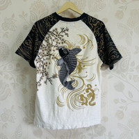 Vintage Sukajan Kara Kuri Embroidered Koi Fish TShirt USED ITEM - PLEASE DON'T EXPECT THIS AS PRISTINE AS NEW ITEM If You Like This Pieces, Grab It Now! It May Not Easy To Find It Again. こんにちは、オンラインショップへようこそ Please Buy With Confidence. We Had More Than 350 Sold Items At Grailed With Perfect Feedback! Brand : Kara Kuri Design : Embroidered, Arts, Sukajan, Colour : White Cream / Black / As Pictures Condition : 8/10 - Used, Minor Stain, Code : TS13 Manual Measurement Size : Laid Flat Armpit to Armpit : 20 inch Shoulder to Hem : 26 inch Size On Tag : M 【PLEASE READ CAREFULLY OUR DESCRIPTION AND SATISFIED OUR ITEM BEFORE MAKE ANY PAYMENT】 【DISCOUNT】 Please Give Us Your Offer, We Can Only Accept The Discount By Negotiation *Products maybe vintage or used item and may have sign of wear *NO Return & NO Refund & NO Fussy Buyer *Payment Accepted via STRIPE / PayPal Only *Details At The Photos For Your Reference 【SHIPMENT】 All item/pieces will be shipped within 1-3 business day via FEDEX / DHL Express Post with tracking number (within 7-10 days). +++ Don't worry about customs tax or fee. We usually declare item as a 'gift & declare value of item below than original price +++ 【IMPORTANT】 TELEPHONE NUMBER and EMAIL is required for standard shipping detail We Sell ChromeHearts Dior Gucci Louis Vuitton Supreme FTP Raf Simons Rick Owen Dries Van Norten Air Jordan GOA Amiri Bode Junya Watanabe CDG CommeDesGarcons IsseyMiyake SonicYouth Akira Stussy