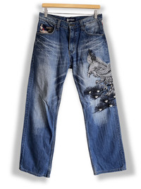 Karakuri BUDEN Pheonix Embroidery Denim If You Like This Pieces, Grab It Now! It May Not Easy To Find It Again. こんにちは、オンラインショップへようこそ Please Buy With Confidence. We Had More Than 280 Sold Items At Grailed With Perfect Feedback! Brand : Karakuri Japan Design : Straight Cut, BUDEN, Embroidered, Denim, Made In : Unknown Colour : Blue Condition : 9/10 - Used, Code : SJ23 Manual Measurement Size : Waist 15 inch (30 inch), Out-seam Length 39 inch Inseam 29 inch Size On Tag : M 【DISCOUNT】 Please Give Us Your Offer, We Can Only Accept The Discount By Negotiation 【PLEASE READ CAREFULLY OUR DESCRIPTION AND SATISFIED OUR ITEM BEFORE MAKE ANY PAYMENT】 *** Products maybe vintage or used item and may have sign of wear *** NO Return & NO Refund & NO Fussy Buyer *** Payment Accepted via PayPal Only *** Details at the photo for confirmation 【SHIPMENT】 All item/pieces will be shipped within 1-3 business day via DHL Express Post with tracking number (within 7-21 days). We usually declare item as a 'gift' 【IMPORTANT】 TELEPHONE NUMBER and EMAIL is required for standard shipping detail #RafSimons #RickOwens #JunyaWatanabe #JunTakahashi #Undercoverism #Bode #Amiri #Supreme #FuckThePopulation #Fendi #Gucci #LouisVuitton #Hermes