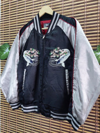 Vintage Sukajan Karakuri Jacket Koi Fish Special Embroidery Japan (Super Rare Design) with Signature If You Like This Pieces, Grab It Now!. It May Not Easy To Find It Again. こんにちは、オンラインショップへようこそ Please Buy With Confidence. We Had More Than 300 Sold Items At Grailed With Perfect Feedback! Colour : Black Made In : Japan Condition : 8/ 10 - Vintage Good Condition, Minor Stain on Shoulder, (refer pictures) Code : SK01 Measurement Size : Laid Flat Chest 22 inch, Length 25 inch, Tag Size : M PLEASE READ CAREFULLY OUR DESCRIPTION AND SATISFIED OUR ITEM BEFORE MAKE ANY PAYMENT *** Products maybe vintage or used item and may have sign of wear *** *** NO Return & NO Refund & NO Fussy Buyer *** *** Payment Accepted via PayPal Only *** *** Details at the photo for confirmation*** Shipment : All item/pieces will be shipped within 1-2 business day via DHL Express Post with tracking number (within 7-21 days). +++ Don't worry about customs tax or fee. We usually declare item as a 'gift & declare value of item below than original price +++ IMPORTANT : TELEPHONE NUMBER and EMAIL is required for standard shipping detail