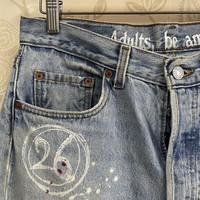 Vintage Levis 501 X Optimist Buttons Crafted Made 1995 If You Like This Pieces, Grab It Now. It May Not Easy To Find It Again. こんにちは、オンラインショップへようこそ Please Buy With Confidence. We Had More Than 280 Sold Items At Grailed With Perfect Feedback! Brand : Levis Vintage Design : Crafted, Printed, Faded, Made In : USA Colour : Blue Denim Condition : 8/10 - Used, Ripped Leg, Code : SJ32 Manual Measurement Size : Lying Flat Waist 33 inch, Outseam 42 inch, Inseam 32 inch, Size On Tag : W33 L32 【DISCOUNT】 Please Give Us Your Offer, We Can Only Accept The Discount By Negotiation 【PLEASE READ CAREFULLY OUR DESCRIPTION AND SATISFIED OUR ITEM BEFORE MAKE ANY PAYMENT】 *Products Maybe Vintage or Used Item & May Have Sign Of Wear *NO Return & NO Refund & NO Fussy Buyer *Payment Accepted via PayPal & Grailed Only *Details At The Photos For More Confirmation 【SHIPMENT】 All item/pieces will be shipped ASAP within 1-3 business day via DHL Express / Fedex Express with tracking number (Estimatedly Arrived Within 7 - 10 days). We usually declare item as a 'gift' 【IMPORTANT】 TELEPHONE NUMBER and EMAIL is required for standard shipping detail Find More Hype Garments At Out Grailed Account : GodSamurai #ChromeHearts #RafSimons #RickOwens #Dior #LouisVuitton #Gucci #Bode #ERL #FTP #Supreme #HelmutLang #Undercover #Vintage #Balmain #BAPE #Hype #Style #Vogue