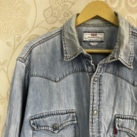 Vintage Levis Trucker Jacket Buttons Up If You Like This Pieces, Grab It Now! It May Not Easy To Find It Again. こんにちは、オンラインショップへようこそ Please Buy With Confidence. We Had More Than 330 Sold Items At Grailed With Perfect Feedback! Brand : Levis Made In : Hong Kong Design : Buttons, Pockets, Colour : Blue / As Pictures Condition : 9/10 - Vintage, Code : BJ18 Manual Measurement Size : Laid Flat Armpit to Armpit : 23 inch Shoulder to Hem : 30 inch Size On Tag : Large 【PLEASE READ CAREFULLY OUR DESCRIPTION AND SATISFIED OUR ITEM BEFORE MAKE ANY PAYMENT】 【DISCOUNT】 Please Give Us Your Offer, We Can Only Accept The Discount By Negotiation *Products maybe vintage or used item and may have sign of wear *NO Return & NO Refund & NO Fussy Buyer *Payment Accepted via STRIPE / PayPal Only *Details At The Photos For Your Reference 【SHIPMENT】 All item/pieces will be shipped within 1-3 business day via FEDEX / DHL Express Post with tracking number (within 7-10 days). +++ Don't worry about customs tax or fee. We usually declare item as a 'gift & declare value of item below than original price +++ 【IMPORTANT】 TELEPHONE NUMBER and EMAIL is required for standard shipping detail #VintageTShirt #ChromeHearts #Supreme #FTP #RafSimonse #RickOwen #AirJordan #HystericGlamour #Amiri #Bode #JunyaWatanabe #CommeDesGarcons #IsseyMiyake #SonicYouth #Akira #Dior
