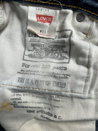 VINTAGE DISTRESSED LEVI'S 502 BIG E SELVEDGE TALON ZIPPED Brand : Levis Made In : Japan Colour : Denim Blue Condition : 8/10 - Vintage, Minor Stain, Manual Measurement Size : Flat Waist 31 inch, Out-seam 38.5 inch Tag Size : W 31 If You Like This Pieces, Grab It Now! It May Not Easy To Find It Again. こんにちは、オンラインショップへようこそ Please Buy With Confidence. We Had More Than 300 Sold Items At Grailed With Perfect Feedback! PLEASE READ ALL DESCRIPTION AND SATISFIED OUR ITEM BEFORE MAKE ANY PAYMENT *** Products maybe vintage or used item and may have sign of wear *** NO Return & NO Refund & NO Fussy Buyer *** Payment Accepted via PayPal Only *** Details at the photo for confirmation Shipment : All item/pieces will be shipped within 1-3 business day via DHL Express Post with tracking number (within 7-21 days). +++ Don't worry about customs tax or fee. We usually declare item as a 'gift & declare value of item below than original price +++ IMPORTANT : TELEPHONE NUMBER and EMAIL is required for standard shipping detail