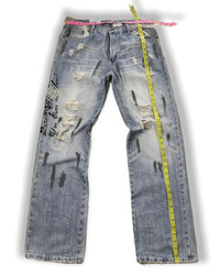 NUDE AMERICA & FIRST VINTAGE DENIM JEANS DISTRESSED If You Like This Pieces, Grab It Now! It May Not Easy To Find It Again. こんにちは、オンラインショップへようこそ Please Buy With Confidence. We Had More Than 300 Sold Items At Grailed With Perfect Feedback! Brand : Nude Colour : Blue Denim Condition : 8/10 - USED Condition, Minor Stain, Distressed Code : SJ32 Measurement Size : Flat Waist 33 inch, Out-seam Length 44 inch Tag Size : W32 - L32 PLEASE READ CAREFULLY OUR DESCRIPTION AND SATISFIED OUR ITEM BEFORE MAKE ANY PAYMENT *** Products maybe vintage or used item and may have sign of wear *** NO Return & NO Refund & NO Fussy Buyer *** Payment Accepted via PayPal Only *** Details at the photo for confirmation Shipment : All item/pieces will be shipped within 1-3 business day via DHL Express Post with tracking number (within 7-21 days). +++ Don't worry about customs tax or fee. We usually declare item as a 'gift & declare value of item below than original price +++ IMPORTANT : TELEPHONE NUMBER and EMAIL is required for standard shipping detail