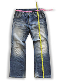 FLARED AVANT GARDE MEN'S TENORAS UNIQUE DENIM JEANS Brand : Tenoras Japan Material : Cotton Colour : Denim Blue Condition : 9/10 - Used Condition, Manual Measurement Size : Lying Flat Waist 32 inch, Out-seam Length 41 inch Tag Size : Large Store Code : SJ08 If You Like This Pieces, Grab It Now. It May Not Easy To Find It Again. こんにちは、オンラインショップへようこそ Please Buy With Confidence. We Had More Than 355 Sold Items At Grailed With Perfect Feedback! PLEASE READ CAREFULLY OUR DESCRIPTION AND SATISFIED OUR ITEM BEFORE MAKE ANY PAYMENT *** Products maybe vintage or used item and may have sign of wear *** NO Return & NO Refund & NO Fussy Buyer *** Payment Accepted via PayPal Only *** Details at the photo for confirmation Shipment : All item/pieces will be shipped within 1-3 business day via DHL Express Post with tracking number (within 7-21 days). +++ Don't worry about customs tax or fee. We usually declare item as a 'gift & declare value of item below than original price +++ IMPORTANT : TELEPHONE NUMBER and EMAIL is required for standard shipping detail