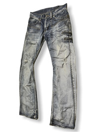 DISTRESSED URBAN CAFE FLARE DENIM JEANS DOUBLE SIDE POCKE If You Like This Pieces, Grab It Now. It May Not Easy To Find It Again. こんにちは、オンラインショップへようこそ Please Buy With Confidence. We Had More Than 250 Sold Items At Grailed With Perfect Feedback! Brand : Japanese Brand Colour : Denim Blue Navy Condition : 9/10 - Vintage Condition, Straight Cut Type Design, Code : SJ34 Measurement Size : Lying Flat Waist 31 inch, Out-seam Length 42 inch Tag Size : 78cm PLEASE READ CAREFULLY OUR DESCRIPTION AND SATISFIED OUR ITEM BEFORE MAKE ANY PAYMENT *** Products maybe vintage or used item and may have sign of wear *** NO Return & NO Refund & NO Fussy Buyer *** Payment Accepted via PayPal Only *** Details at the photo for confirmation Shipment : All item/pieces will be shipped within 1-3 business day via DHL Express Post with tracking number (within 7-21 days). +++ Don't worry about customs tax or fee. We usually declare item as a 'gift & declare value of item below than original price +++ IMPORTANT : TELEPHONE NUMBER and EMAIL is required for standard shipping detail