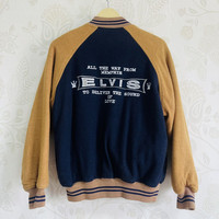 Vintage King Of Rock Elvis Presley Varsity Jacket PLEASE DON'T EXPECT THIS AS PRISTINE AS NEW ITEM If You Like This Pieces, Grab It Now! It May Not Easy To Find It Again. こんにちは、オンラインショップへようこそ Please Buy With Confidence. We Had More Than 350 Sold Items At Grailed With Perfect Feedback! Brand : Elvis Design : Bomber, Varsity Jacket, Buttons, Colour : Brown Blue / As Pictures Condition : 8/10 - Used, One Pinhole, Code : BJ61 Manual Measurement Size : Laid Flat Armpit to Armpit : 23 inch Shoulder to Hem : 26 inch Size On Tag : M 【PLEASE READ CAREFULLY OUR DESCRIPTION AND SATISFIED OUR ITEM BEFORE MAKE ANY PAYMENT】 【DISCOUNT】 Please Give Us Your Offer, We Can Only Accept The Discount By Negotiation *Products maybe vintage or used item and may have sign of wear *NO Return & NO Refund & NO Fussy Buyer *Payment Accepted via STRIPE / PayPal Only *Details At The Photos For Your Reference 【SHIPMENT】 All item/pieces will be shipped within 1-3 business day via FEDEX / DHL Express Post with tracking number (within 7-10 days). +++ Don't worry about customs tax or fee. We usually declare item as a 'gift & declare value of item below than original price +++ 【IMPORTANT】 TELEPHONE NUMBER and EMAIL is required for standard shipping detail We Sell ChromeHearts Dior Gucci Louis Vuitton Supreme FTP Raf Simons Rick Owen Dries Van Norten Air Jordan GOA Amiri Bode Junya Watanabe CDG CommeDesGarcons IsseyMiyake SonicYouth Akira Stussy