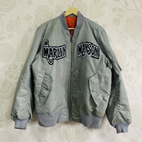 Vintage Marilyn Manson Patches Reversible MA-1 Bomber Jacket If You Like This Pieces, Grab It Now! It May Not Easy To Find It Again. こんにちは、オンラインショップへようこそ Please Buy With Confidence. We Had More Than 355 Sold Items At Grailed With Perfect Feedback! Brand : Flight Jacket Japan Made In : Japan Design : Bomber, Reversible, Patches, Colour : Olive Green / As Pictures Condition : 9/10 - Used, Manual Measurement Size : Laid Flat Armpit to Armpit : 25 inch Shoulder to Hem : 30 inch Size On Tag : XL Store Code : BB01 【PLEASE READ CAREFULLY OUR DESCRIPTION AND SATISFIED OUR ITEM BEFORE MAKE ANY PAYMENT】 【DISCOUNT】 Please Give Us Your Offer, We Can Only Accept The Discount By Negotiation *Products maybe vintage or used item and may have sign of wear *NO Return & NO Refund & NO Fussy Buyer *Payment Accepted via STRIPE / PayPal Only *Details At The Photos For Your Reference 【SHIPMENT】 All item/pieces will be shipped within 1-3 business day via FEDEX / DHL Express Post with tracking number (within 7-10 days). +++ Don't worry about customs tax or fee. We usually declare item as a 'gift & declare value of item below than original price +++ 【IMPORTANT】 TELEPHONE NUMBER and EMAIL is required for standard shipping detail We Sell ChromeHearts Dior Gucci Louis Vuitton Supreme FTP Raf Simons Rick Owen Dries Van Norten Air Jordan GOA Amiri Bode Junya Watanabe CDG CommeDesGarcons IsseyMiyake SonicYouth Akira Stussy