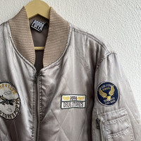 VINTAGE POPPA DRUG STORE SATIN PATCHES BOMBER JACKET USED ITEM - PLEASE DON'T EXPECT THIS AS PRISTINE AS NEW ITEM Brand : Drug Store Made In : Japan Design : Bomber, Satin, Zipper, Patches, Colour : Faded Purple / As Pictures Condition : 8/10 - Used, Vintage, Manual Measurement Size : Laid Flat Armpit to Armpit : 25 inch Shoulder to Hem : 29 inch Size On Tag : L Store Code : BB03 If You Like This Pieces, Grab It Now! It May Not Easy To Find It Again. こんにちは、オンラインショップへようこそ Please Buy With Confidence. We Had More Than 360 Sold Items At Grailed With Perfect Feedback! 【PLEASE READ CAREFULLY OUR DESCRIPTION AND SATISFIED OUR ITEM BEFORE MAKE ANY PAYMENT】 【DISCOUNT】 Please Give Us Your Offer, We Can Only Accept The Discount By Negotiation *Products maybe vintage or used item and may have sign of wear *NO Return & NO Refund & NO Fussy Buyer *Payment Accepted via STRIPE / PayPal Only *Details At The Photos For Your Reference 【SHIPMENT】 All item/pieces will be shipped within 1-3 business day via FEDEX / DHL Express Post with tracking number (within 7-10 days). +++ Don't worry about customs tax or fee. We usually declare item as a 'gift & declare value of item below than original price +++ 【IMPORTANT】 TELEPHONE NUMBER and EMAIL is required for standard shipping detail We Sell ChromeHearts Dior Gucci Louis Vuitton Supreme FTP Raf Simons Rick Owen Dries Van Norten Air Jordan GOA Amiri Bode Junya Watanabe CDG CommeDesGarcons IsseyMiyake SonicYouth Akira Stussy BAPE