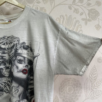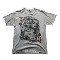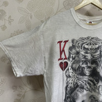 King Queen Skulls Fruit Of The Loom Brand : Fruit Of The Loom Made In : Haiti Design : Big Printed, Vintage, Colour : White Gray / As Pictures Condition : 9/10 - Used, Stains, Manual Measurement Size : Laid Flat Armpit to Armpit : 22 inch, Shoulder to Hem : 30 inch, Size On Tag : L Store Code : SW01 If You Like This Pieces, Grab It Now! It May Not Easy To Find It Again. こんにちは、オンラインショップへようこそ Please Buy With Confidence. We Had More Than 355 Sold Items At Grailed With Perfect Feedback! 【DISCOUNT】 Please Give Us Your Offer, We Can Only Accept The Discount By Negotiation 【PLEASE READ CAREFULLY OUR DESCRIPTION AND SATISFIED OUR ITEM BEFORE MAKE ANY PAYMENT】 *Products maybe vintage or used item and may have sign of wear *NO Return & NO Refund & NO Fussy Buyer *Payment Accepted via STRIPE / PayPal Only *Details At The Photos For Your Reference 【SHIPMENT】 All item/pieces will be shipped within 1-3 business day via FEDEX / DHL Express Post with tracking number (within 7-10 days). +++ Don't worry about customs tax or fee. We usually declare item as a 'gift & declare value of item below than original price +++ 【IMPORTANT】 TELEPHONE NUMBER and EMAIL is required for standard shipping detail #VintageTShirt #ChromeHearts #RafSimonse #RickOwen #HystericGlamour #Amiri #Bode #JunyaWatanabe #CommeDesGarcons #IsseyMiyake