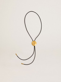 Black leather necklace with gold circular detail