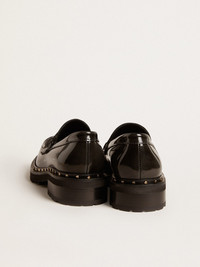 A timeless classic reworked in Golden style: Chunky boldly reinterprets the evergreen silhouette of the loafer. This version features a black leather upper and the addition of contrasting gold studs. DETAILS Item No. GWF00782.F006302.90100 - Black leather upper - Contrasting gold studs - Vintage finish - Upper: 100% cow leather - Lining: 100% cow leather - Sole: 100% rubber