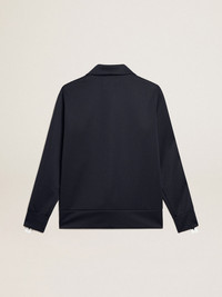 A collection with a casual soul but a versatile attitude: inspired by the Seventies, it has a timeless vintage appeal, suited to any occasion or look. This zipped, regular-fit sweatshirt in dark blue technical jersey features a white grosgrain strip on the sleeves with contrasting blue stars. The contrasting logo on the front adds the finishing touch. DETAILS Item No. GWP00875.P000520.50767 - Star Collection - Color: dark blue - White grosgrain strip on the sleeves with contrasting blue stars - Contrasting white logo on the front - Two pockets - Long sleeves - Zip fastening - Regular fit - Main material: 100% polyester - Made in Italy The model is 177 cm tall and is wearing a size S.