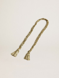 Your story becomes the most precious accessory to wear and to always keep with you. In braided fabric, this dove-gray charm is that Golden touch you've been looking for. DETAILS Item No. 8050235834217 - Dove-gray braided fabric charm - Brass chain - Main material: 100% polyester - Decoration: 100% brass metal