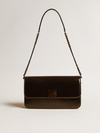 Capturing the essence of fascinating journeys and indelible family moments, the Gioia bag is a tapestry of stories waiting to be discovered. In black glossy leather, this model features a lock closure with metal buckle and chain. The zippered inside pocket for all your memories and concealed outside pocket to hold your secrets add the finishing touch. DETAILS Item No. 8050235893849 - Color: black - Lock closure with metal buckle with side buttons - Triple inside pocket - Inside pocket with metal zip closure - Inner card holder - Concealed pocket on the back - Logo on the back - Metal chain with attachable leather handle - Main material: 100% cow leather - Lining: 100% sheepskin leather - Size: 24 x 13 x 6.5 cm - Chain length: 106 cm