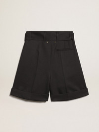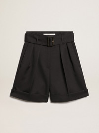 Golden Collection shorts in black wool gabardine with belt at the waist