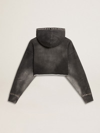 Gray cropped sweatshirt with a lived-in effect