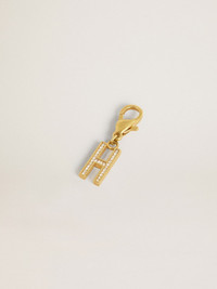 Letter H charm in gold-colored brass with crystals