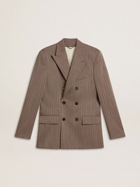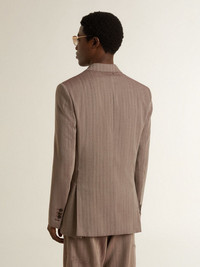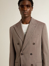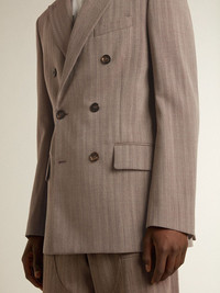 Men's beige chevron wool blend double-breasted blazer