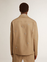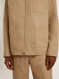 Men's beige jacket with floral embroidery and full zip