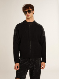 Men's black merino wool jacket with leather patches