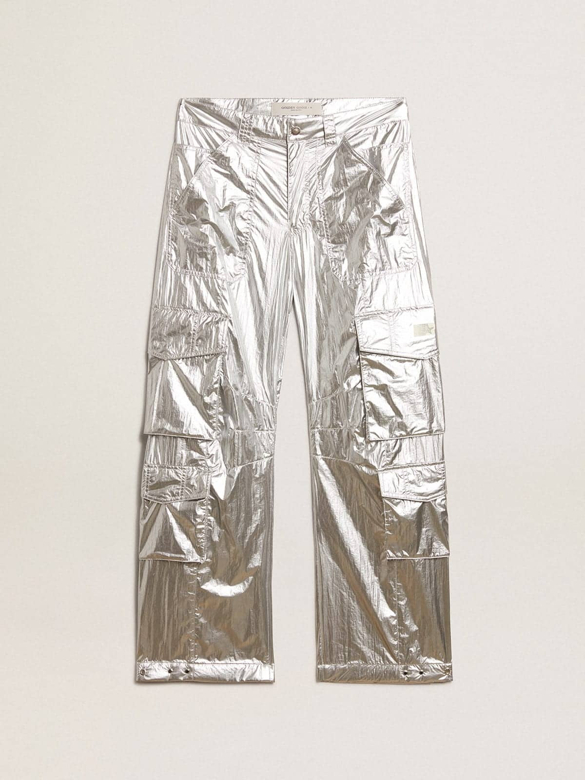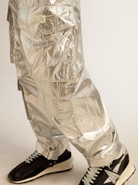 Men's cargo pants in silver technical fabric