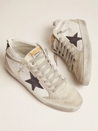 A casual look exuding streetwear elegance: a model that interprets the Golden Goose style thanks to the use of exclusive treatments and finishes. These Mid Star sneakers feature a white and grey leather and suede upper and a black star. DETAILS Item No. GMF00122.F001487.10599 - Main material: 100% cowhide leather - Lining: 55% cotton, 45% cow leather - Sole: 100% rubber - White and grey leather and suede upper - Suede heel tab - Black leather star - Grey laces - Made in Italy - Handcrafted - Made in Italy