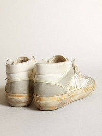 Uniquely elegant versatility: the Mid Star sneakers take a refined approach to their Eighties skate scene inspiration. With a white nappa leather upper accentuated by ice-gray suede inserts, this men’s model features a white leather star and an ice-gray suede flash. The textured-effect foxing and cream-colored laces complete the look. DETAILS Item No. GMF00408.F003449.10276 - White nappa leather upper - White leather star - White nappa leather heel tab - Ice-gray suede flash - Ice-gray suede inserts - Textured-effect foxing - Cream-colored laces - Vintage finish - Upper: 46% sheepskin leather, 44% cow leather, 10% polyamide - Lining: 62% textile polyurethane, 21% cow leather, 17% cotton - Sole: 100% rubber - Handmade - Made in Italy