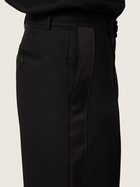 Men's pants in black cool wool with satin side stripe