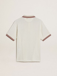 Men's polo shirt in white perforated knit with burgundy striped details