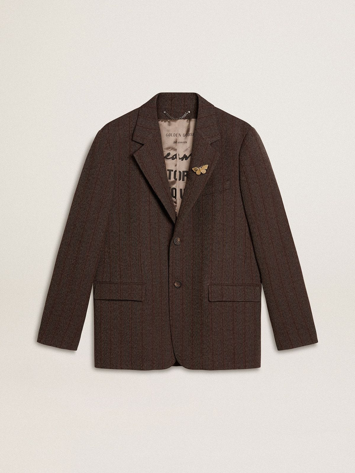 Men's single-breasted blazer in dark brown wool with thin stripe pattern