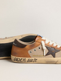 Men's Super-Star LTD in beige wool with brown leather star and camel inserts