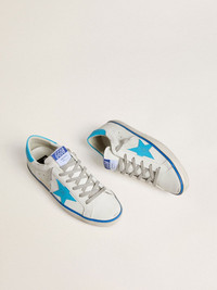 Men's Super-Star LTD in white leather with light blue leather star and heel tab